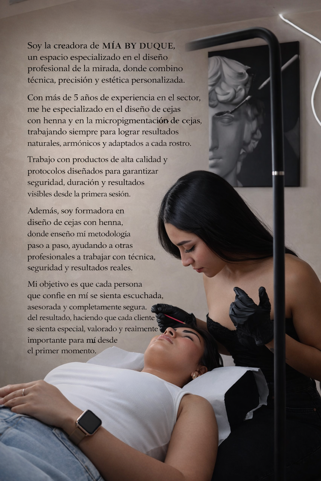 .Soy la creadora de MÍA BY DUQUE, un espacio especializado en el diseño profesional de la mirada, donde combino técnica, precisión y estética personalizada.